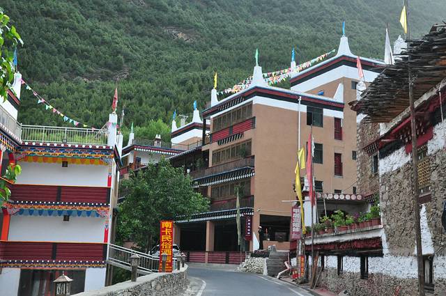 2018年5月12日下午2点30分到达甲居藏寨,先在公路旁的1号2号观景台停留,俯瞰整个藏寨全貌,然后入住曾阿热大叔接待站,这是此行住宿最差的一次,本来是民宿,条件就不好,加之要求只能住三人间,这样我们两对夫妇,一个单身,只能打乱入住。北京的夫妇不同意,理由是他们都打呼噜,不习惯与他人一起合住。领队与老板商量,最终同意我们两对夫妇各一三人间,才算安排妥当。放好行李,已是下午3点多,我们各自到藏寨游览参观。