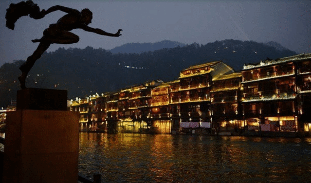 很多人以为是跳水儿童,其实是纪念一名青年英雄——王湘冀,1964年出生,凤凰县沱江镇人。1982年6月21日,他从林峰工地回家,下沱江洗澡,上岸时发现三个儿童被湍急的河水冲下河坝。王湘冀飞身下河救出两个儿童,在救出第三个落水儿童后筋疲力竭光荣牺牲。共青团凤凰县委追认王湘冀为共青团团员,湖南省人民政府授予他烈士称号。