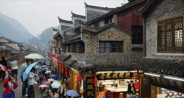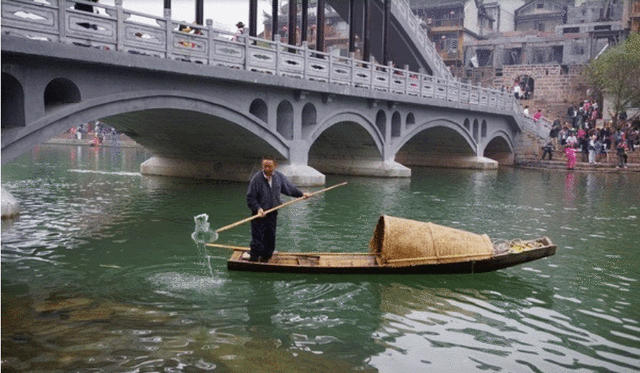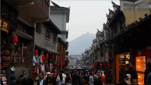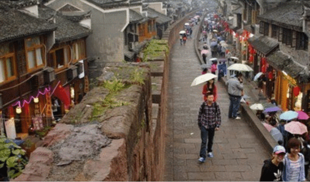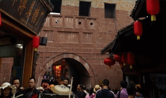 与虹桥路比邻的是南边街,直通南门城楼。从南边街继续前行,可至阜城门。城楼很新,红色城墙仿若新制,故初极狐疑,后见东门城楼乃释疑,知康熙朝稳边庭所需,所建石墙极精致,严丝密缝,非今人所伪劣之形象工程。阜城门外,自团结桥下望,护城河荡然无存,早已沦为臭水沟。城门内有文化广场,广场上有凤凰铜像,四周掮客与小商贩极多,从换装拍照到夜晚篝火晚会,名目繁多,种类齐全,不愁不从你这里拔下几根毛。若对此抵抗力极强者,便可于道门口右拐东正街,看朱镕基题字“凤凰城”