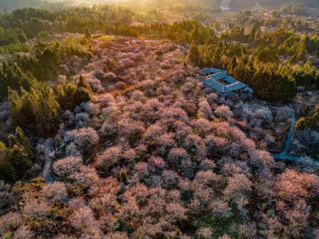 顺着中营寨子往西200米,即见千亩梅园。火山石铺就的小道蜿蜒曲折,万株梅花竞相开放,云蒸霞蔚。满树的梅花,或洁白胜雪,或灿若云霞,娇艳却清丽,华贵却清冷。一片片洁白的花瓣,薄如蝉翼,随着清风飘逸,空气中弥漫沁人幽香,香气盈鼻,身临其间,如痴如醉。