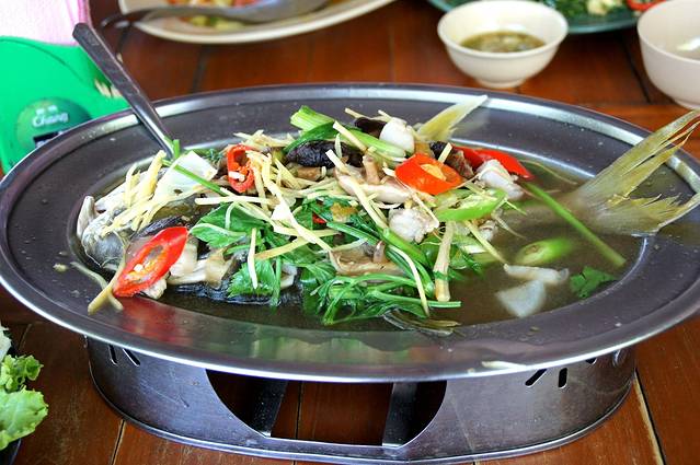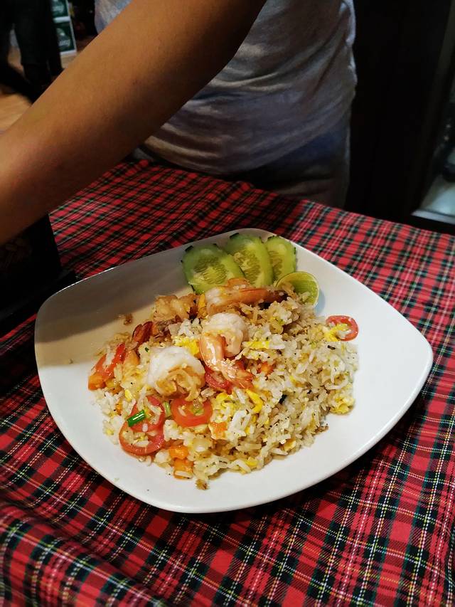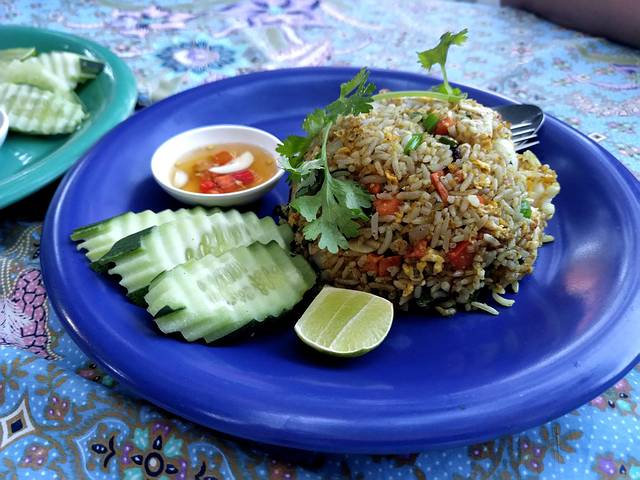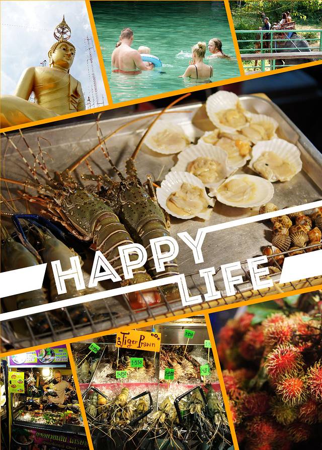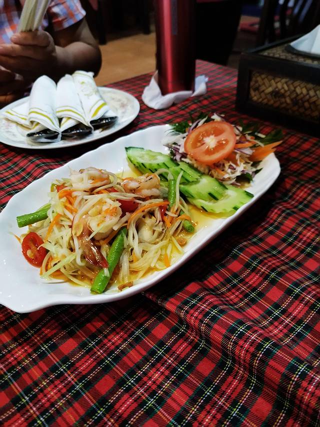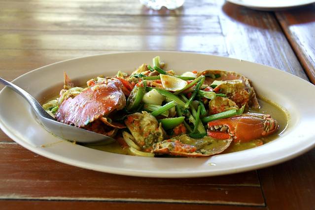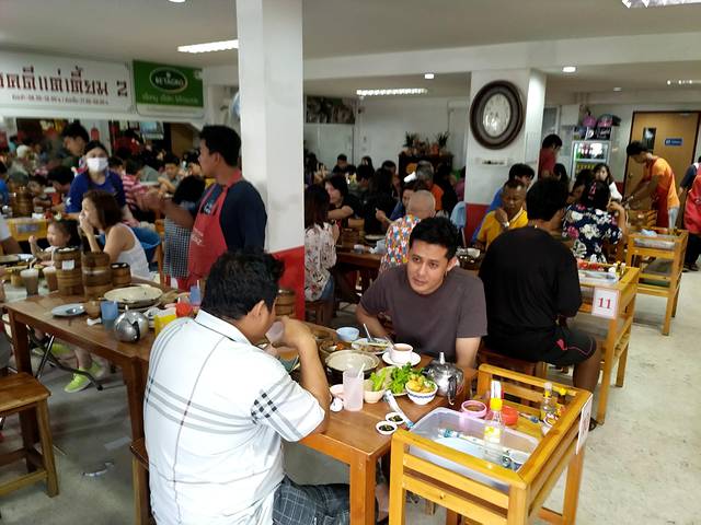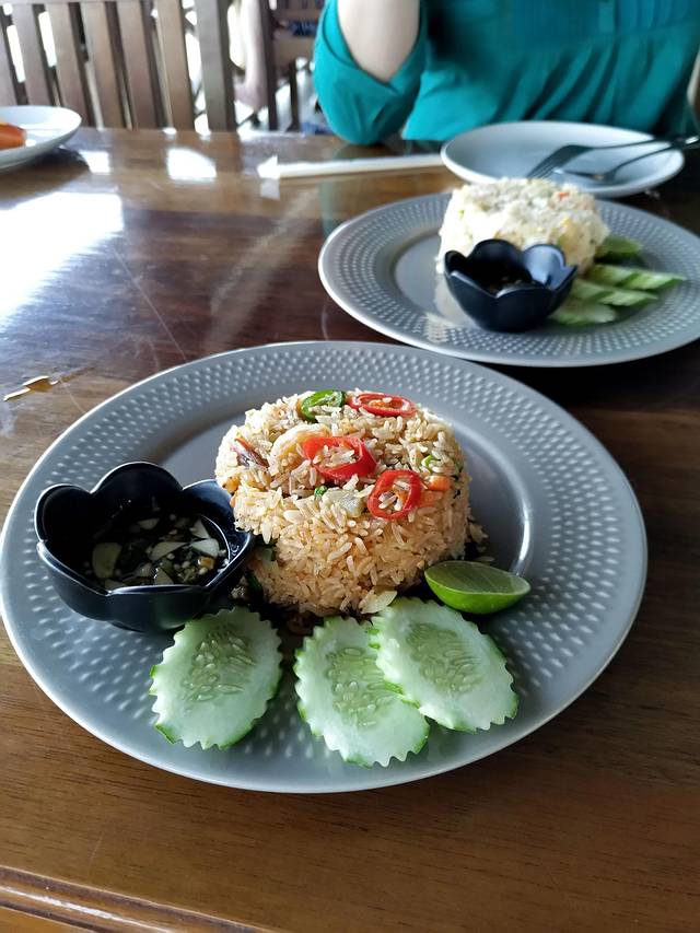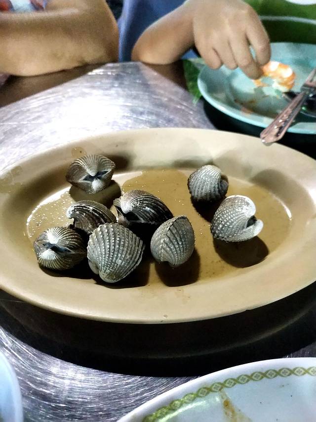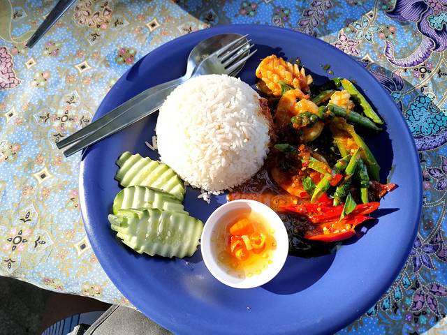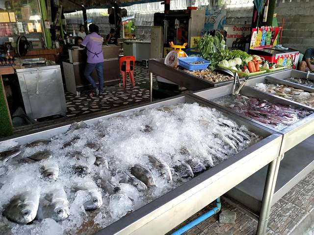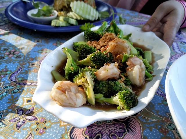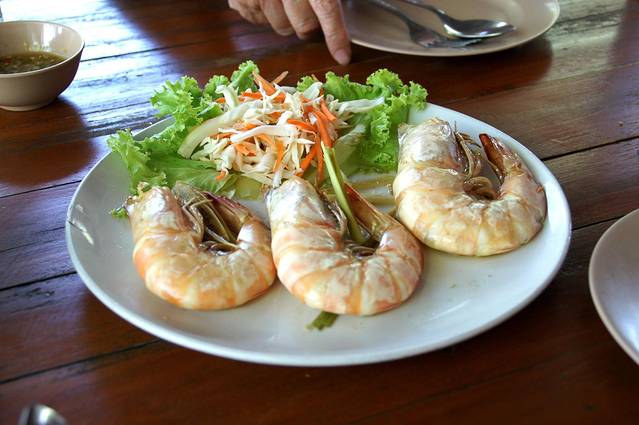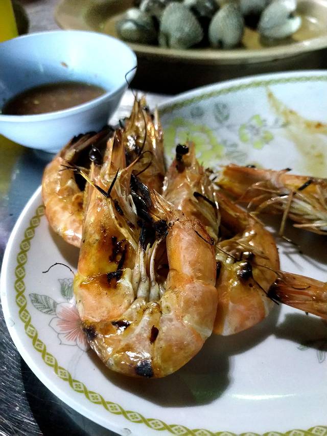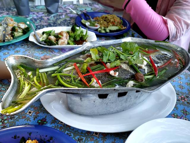 上餐了,印象中这是旅程中中午最丰盛的大餐之一。肥美满满是黄的螃蟹,硕大的大虾,清蒸海鱼……吃下来不过1900铢,宋卡的物价还是便宜。