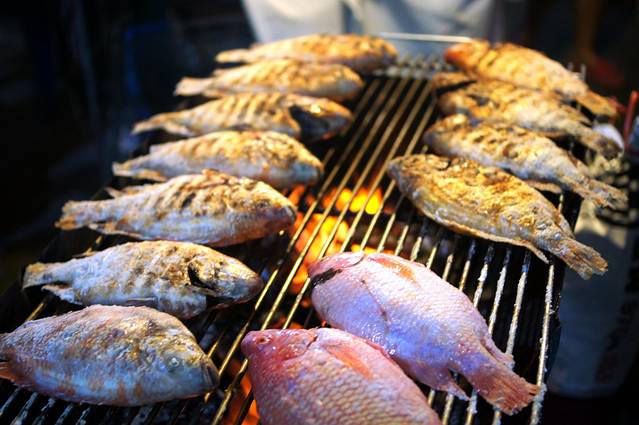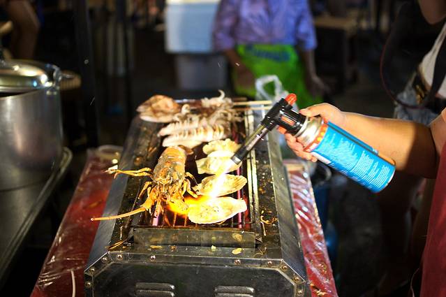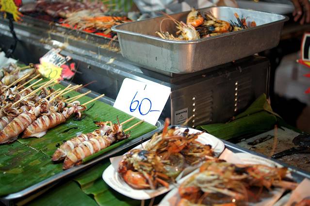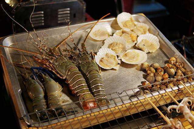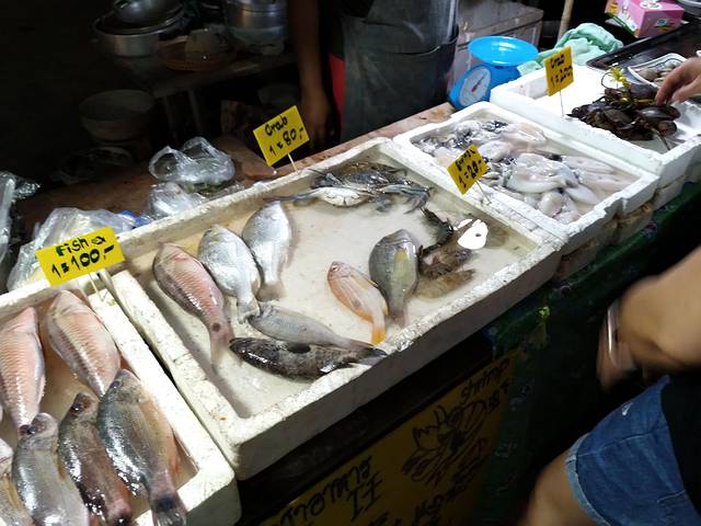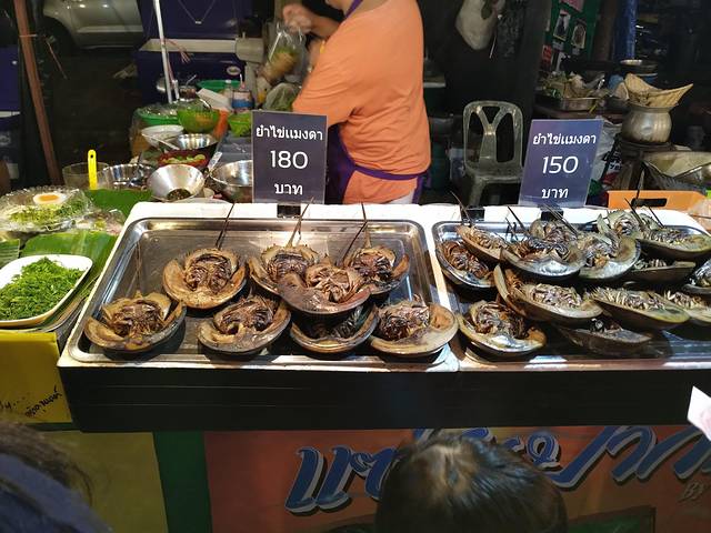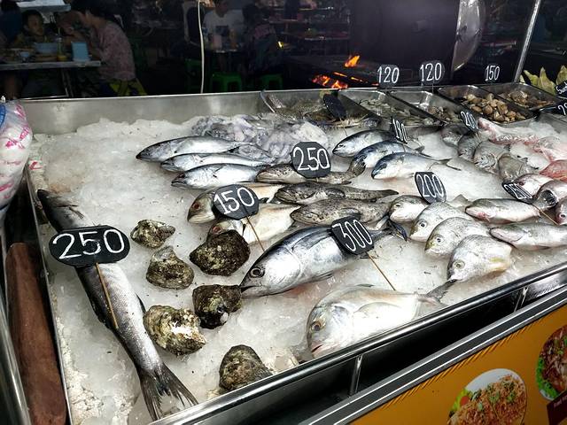 各种烤鱿鱼、烤章鱼、烤虾,都不贵,基本上几十泰铢的样子。