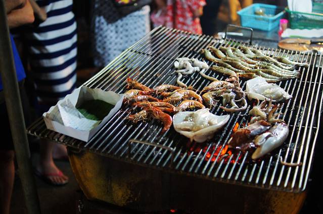 甲米的周末夜市以seafood而著称,各种各样的美食让人目不暇给,美食先来一波。