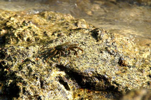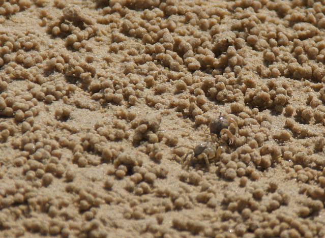 沙滩上到处都是小沙球,从海滩上走过,无数的小螃蟹就从洞里爬出来,慌慌张张的夺路而逃。