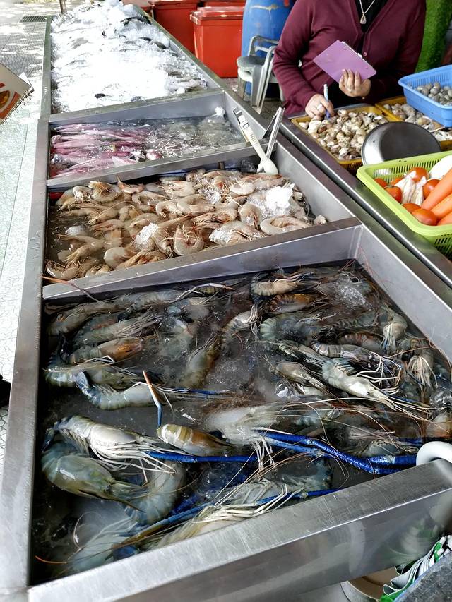 这里的海鲜比起兰塔夜市还是丰富多了,欧美的游客也不少,需要等座位。