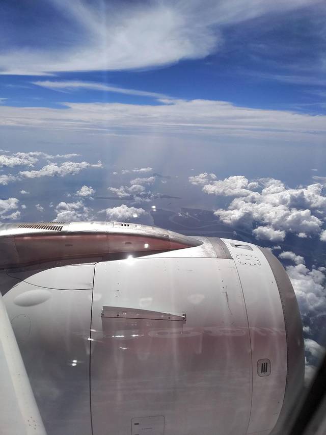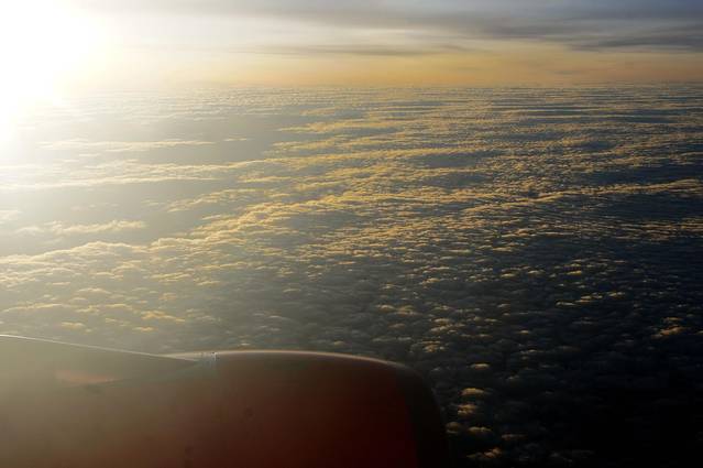 北京先飞吉隆坡再中转甲米,说起来是第一次从夜里坐飞机飞到天明。为此专门选了靠左的位置,就是想在10000米的高空感受初升之日的温暖。