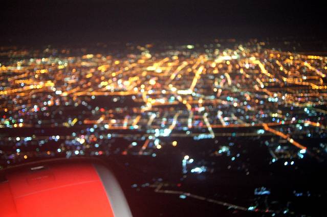 这个城市的灯光在机翼的轰鸣中向左微微倾斜,大地的弧面从左边斜斜的压了过来,这个城市迷乱的灯光在冬夜里显得分外的朦胧。