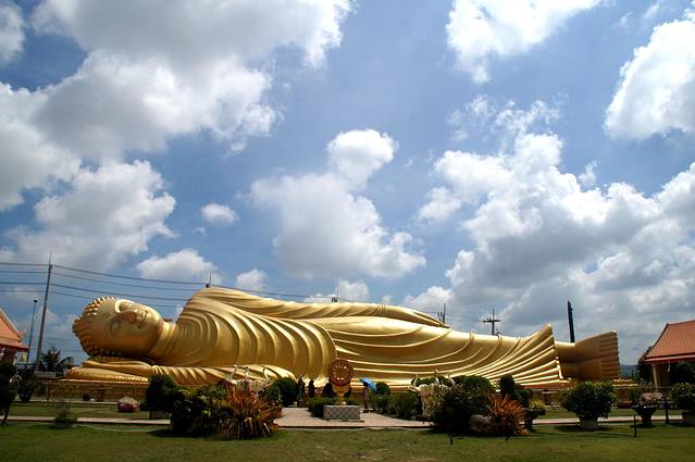 合艾越寺(Wat Hat Yai Nai)据说是本地佛寺的代表,里面有一尊巨大的卧佛。后面则是宋卡湖了。
