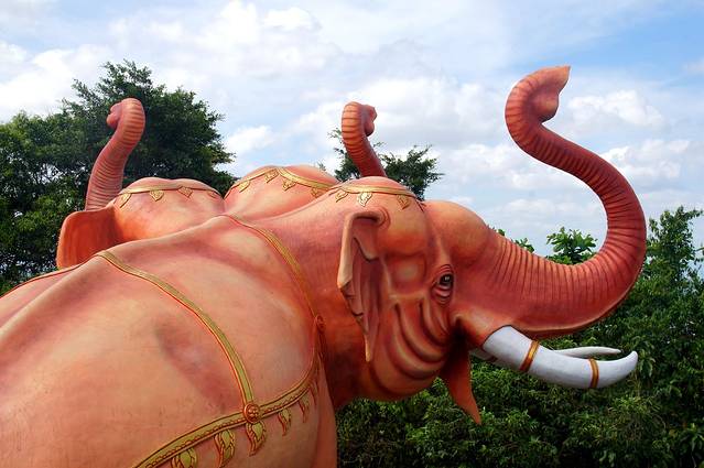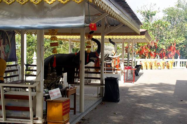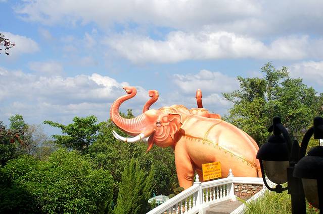 而这个山头上的主体建筑,则是四面佛像,围绕着的是各种捐助的大象雕像。
