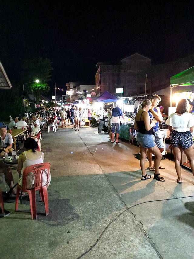 第二天的酒店依然定在了甲米镇上,原因只有一个:2月1日是周五,能赶上久负盛名的甲米夜市。事实上,后来住到功孟海滩的网红酒店——毕安酒店的时候,每逢周末的时候都有去往甲米夜市的专车,400铢/人。