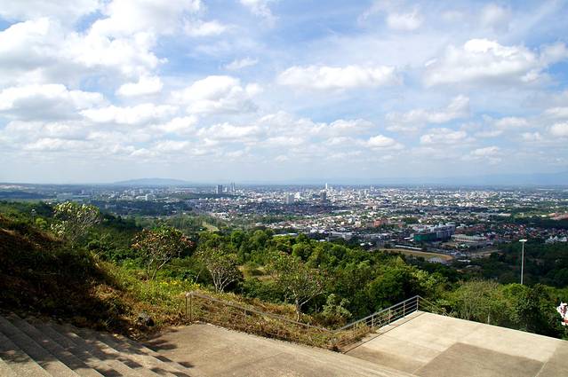 换一个视角看世界的感觉截然不同,整个视野在面前豁然开朗。合艾,泰国第三大城市就这样在面前展开,而天边最远处那一模若隐若现的蓝,应该是印度洋安达曼海的影子吧。
