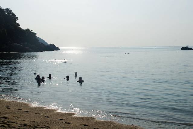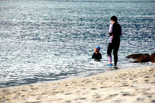 没有了正午阳光的灼热,正式下海的好时候,海边的人慢慢的多了起来。