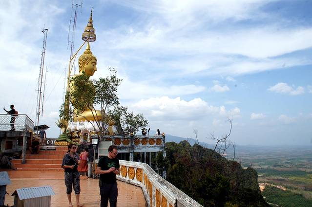 虽然一闪而过念头,并不妨碍成功登顶虎窟寺的空中大佛(姑且这么称呼吧),这里也是甲米附近的高点,在这儿凭栏远眺,甲米像一块画布向着远方缓缓的铺开,在视线的尽头,海和天空通过弥散在分界线上的淡淡的雾霭连接在一起。