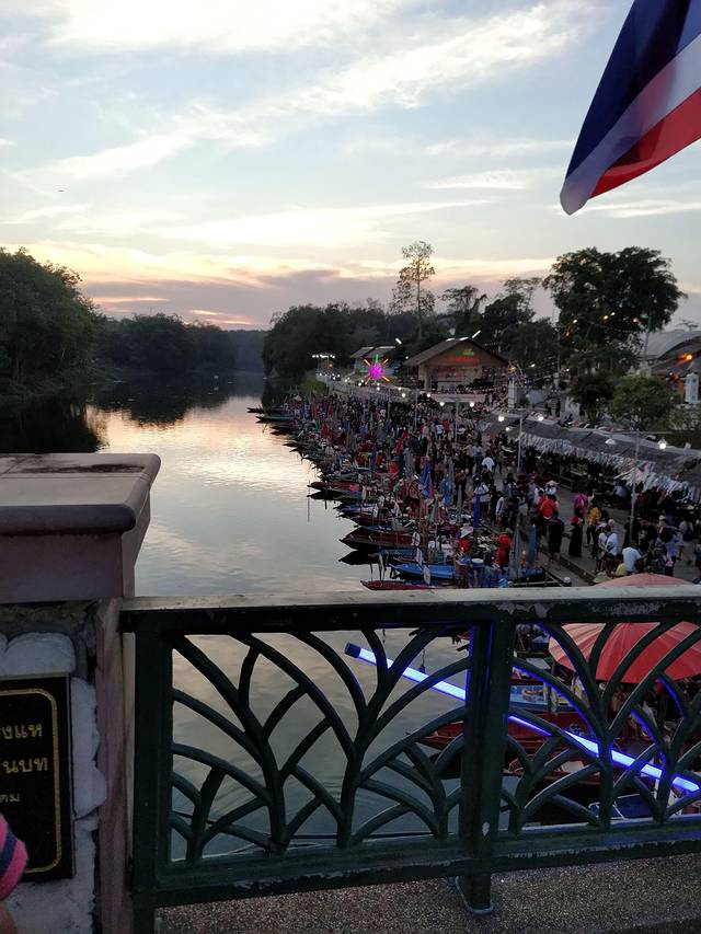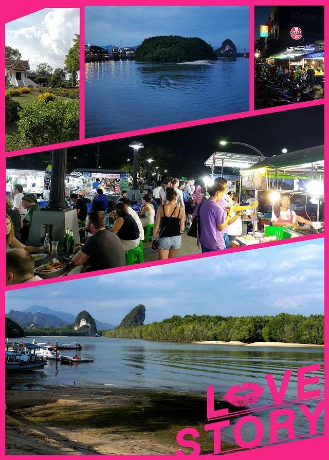 在旅店收拾完行装,不知不觉中暮色也已经慢慢降临,灯光次第的亮起,倒映在缓缓流淌的甲米河上,别有一番风味。