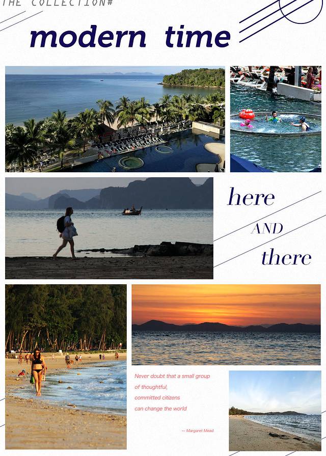 一路向南,从甲米到丽贝,从印度洋西海岸到太平洋东海岸,五彩艳丽点缀其中,而主色彩则是那抹不开的蓝。