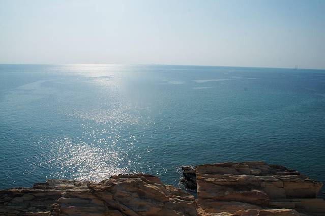 地平线在遥远的地方微微的弯成了弧形,天空的蓝色也纯净得透亮。不知道是海映着天的蓝色呢,还是天映射着海的蓝色。