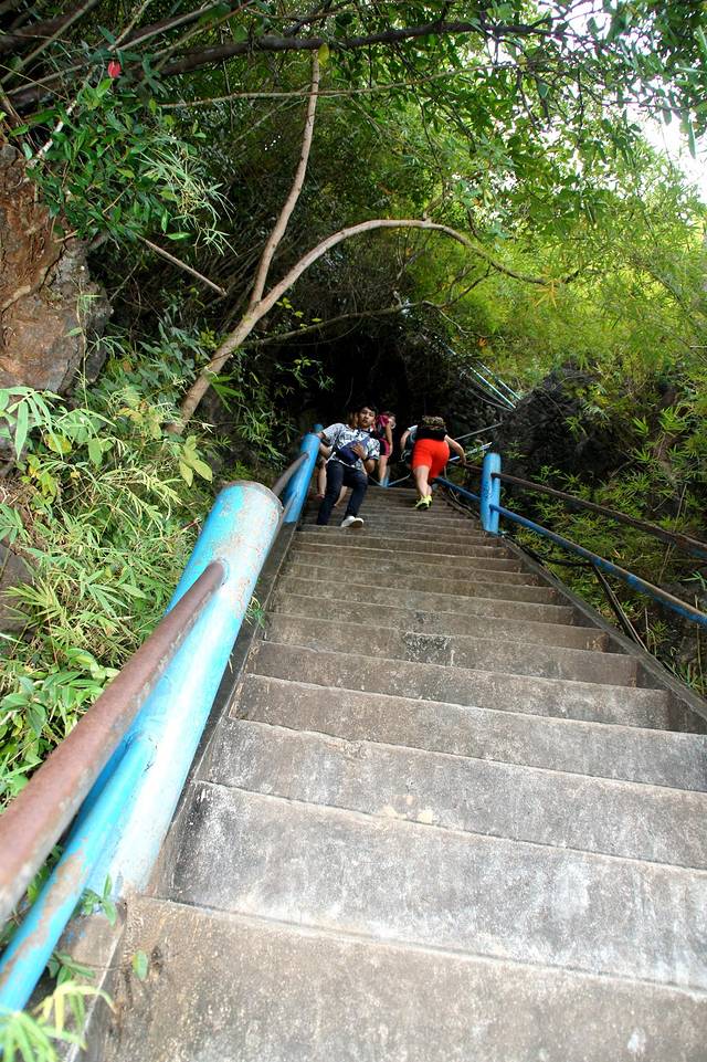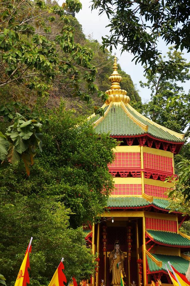 对远到的游客来说,虎窟寺名声在外而且非常吸引人的一点则是攀登它旁边1237级台阶,到达600米高的喀斯特山顶,俯瞰整个甲米景色。