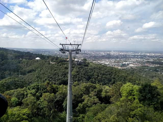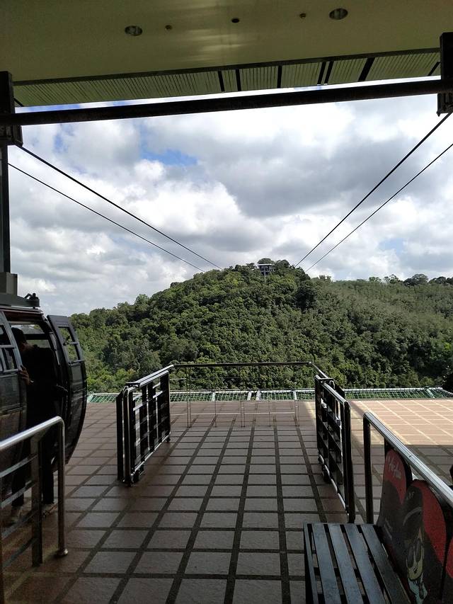 合艾公园从介绍中看也就是有个山头上的站佛而已,而前往站佛所在地之前,首先看到的是通往四面佛的索道,这条索道的另外一头是传说中四面佛的所在地,既然来了没有不过去拜拜的道理,而买完票进入索道站,还是被横跨两座山之间的索道惊着了
