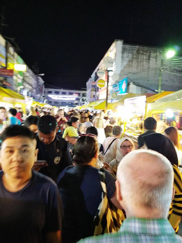 暮色下的甲米小镇,依然是那么的慵懒,似乎并没有比平时更加热闹。然而,随着双条车开近夜市,仿佛在一瞬间,无数人凭空出现在小广场上,把并不宽的街道挤得水泄不通。