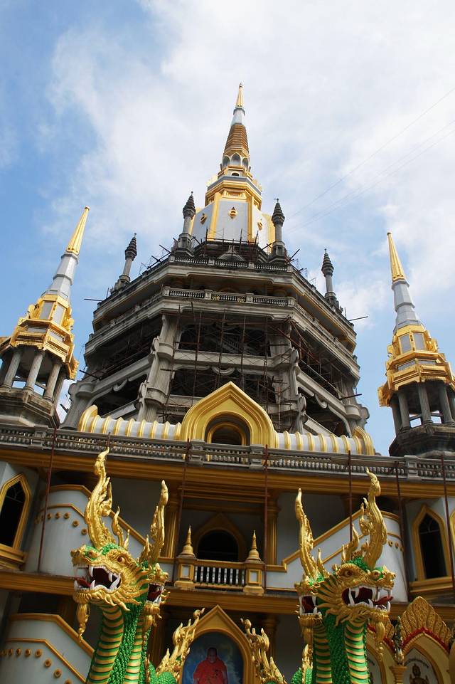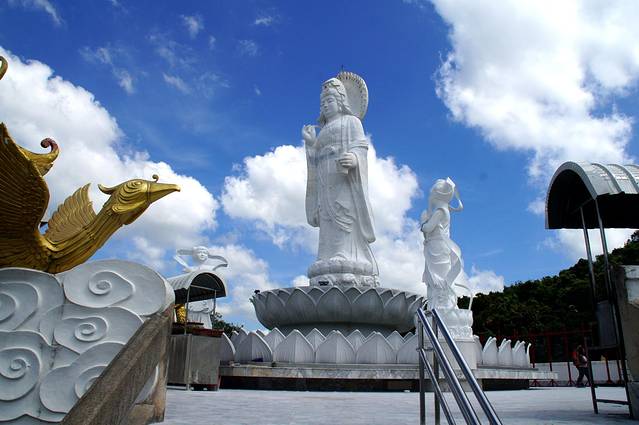在站佛的下方,洁白的观音像也在注视着这个城市。女版观音像的出现,也正是中国影响力对这个城市影响力的见证。在泰国的传统佛教中,应该也没有这样一个女版菩萨吧。