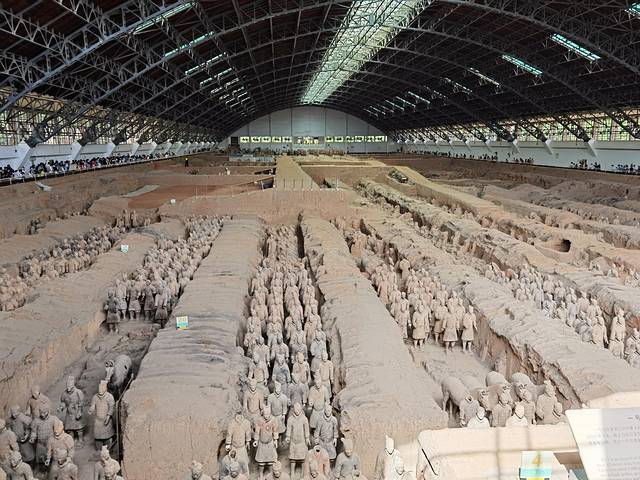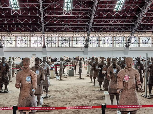 一号坑是开发得最完全的一个坑,里面的兵马俑是最多的。