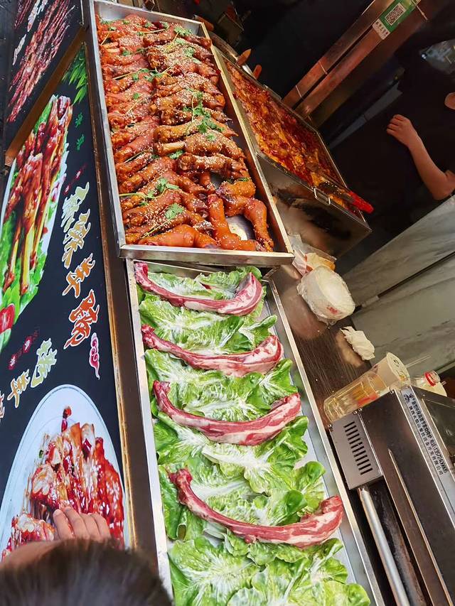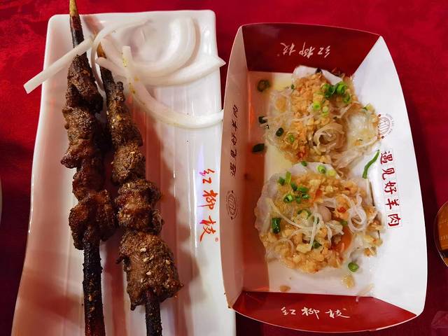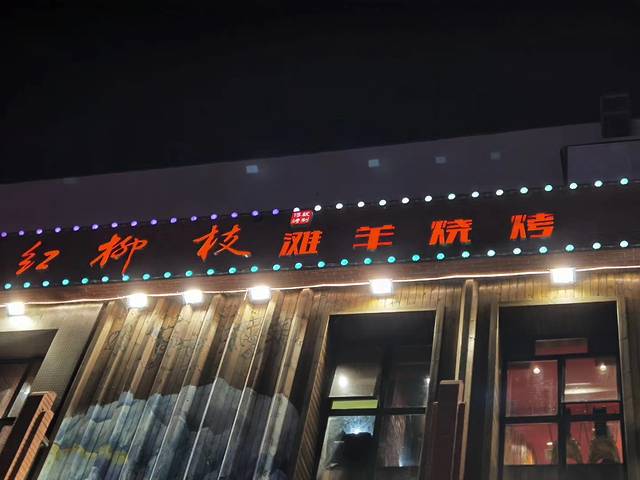 我们是订了明天一早的飞机去重庆,今天晚上是在银川的最后一晚,当然想再尝尝当地的美食。与我们同车的一位游客说他昨天去了一家名叫“红柳枝滩羊烧烤”的店味道很好,很火爆,是银川最多人吃的烧烤。说得我们都心动了,心想过了这个村就没有这个店了,于是便让司机送我们到那里。