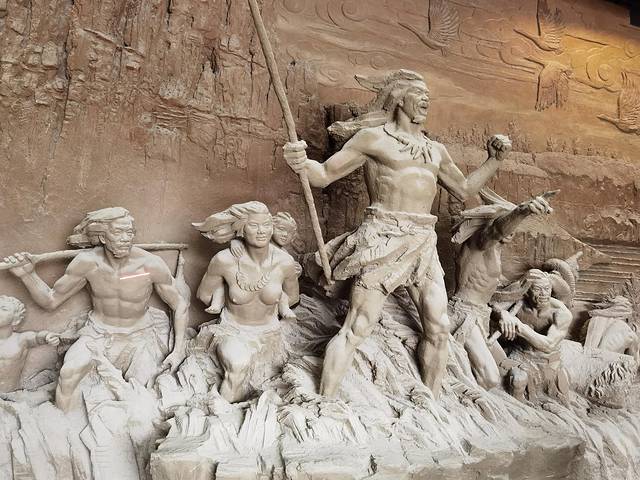 司机兼导游帮我们换了票之后我们便开始游览水洞沟景区,一进大门就是水洞沟博物馆,这里展示了有关原始人遗址的出土文物,还有一个小剧场让游客免费观看原始人是如何钻木取火和大迁徙的,也挺有意思。