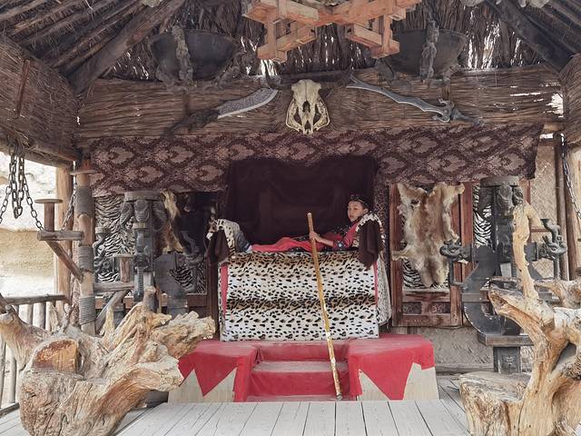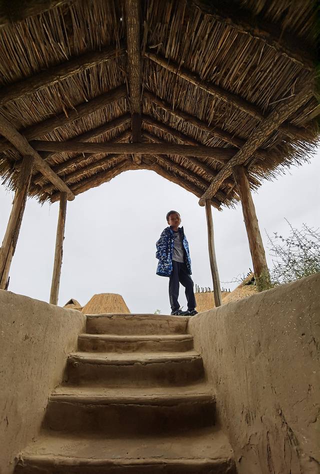 走出博物馆之后来到一个依照原始人生活所建成的原始人生活区,这里搭建了几个草屋,草屋有地下室,我们可以走到屋子里面游览。