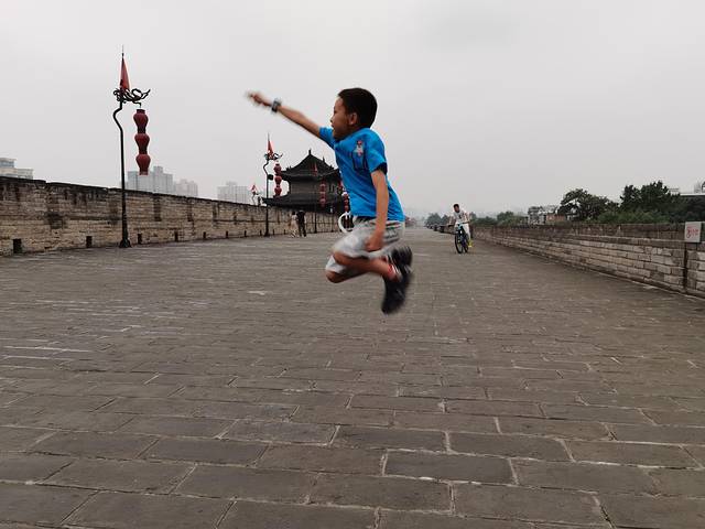 离开大唐芙蓉园之后,我们登上了西安城墙,(门票54元)我们从东门(长乐门)上,从南门(永宁门)下,走了四分之一的城墙,步行约3公里。