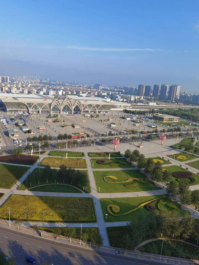 我们的酒店离火车站很近,白天从酒店高层望向银川火车站,这里的绿化做得不错,火车站广场也很整洁。