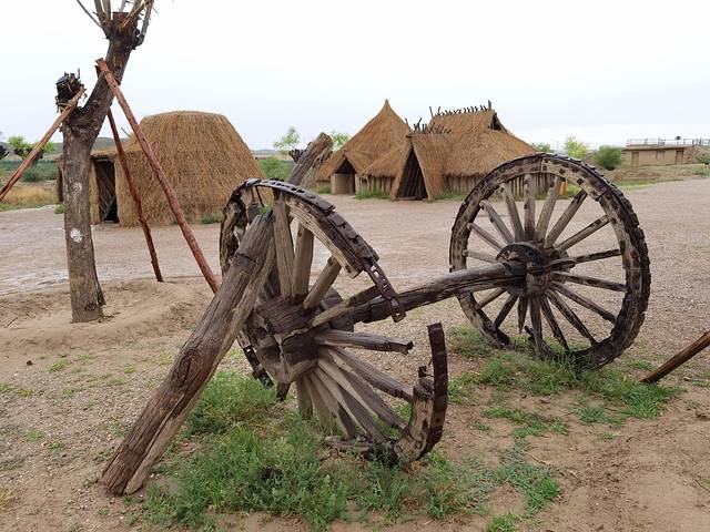 观看完影片之后,可以免费参观西夏博物馆,里面陈列的也是西夏时期的一些东西,如字画、耕作工具等等。我们对这些兴趣不大,匆匆走过场之后便乘坐景区的区间车进入王陵游览。