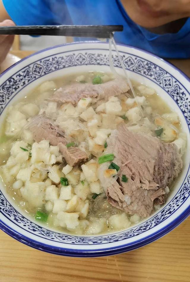 入住之后,我们便到广场旁边的回民街走了一圈,这里主要以小吃为主,还有很多卖小件手工艺品的店,但总体来说这里的小吃都是比较大众化的东西,像牛羊肉串、薯塔这些基本上每个城市的小吃街都有。我们就吃了个西安特色的羊肉泡馍,就是撕碎的馍馍放在羊肉汤里面浸泡,然后加几片羊肉和一些粉丝,对于南方人来说不是很吃得惯,儿子尝了一口就不吃了,最后还是打包了肯德基和一些水果回酒店。