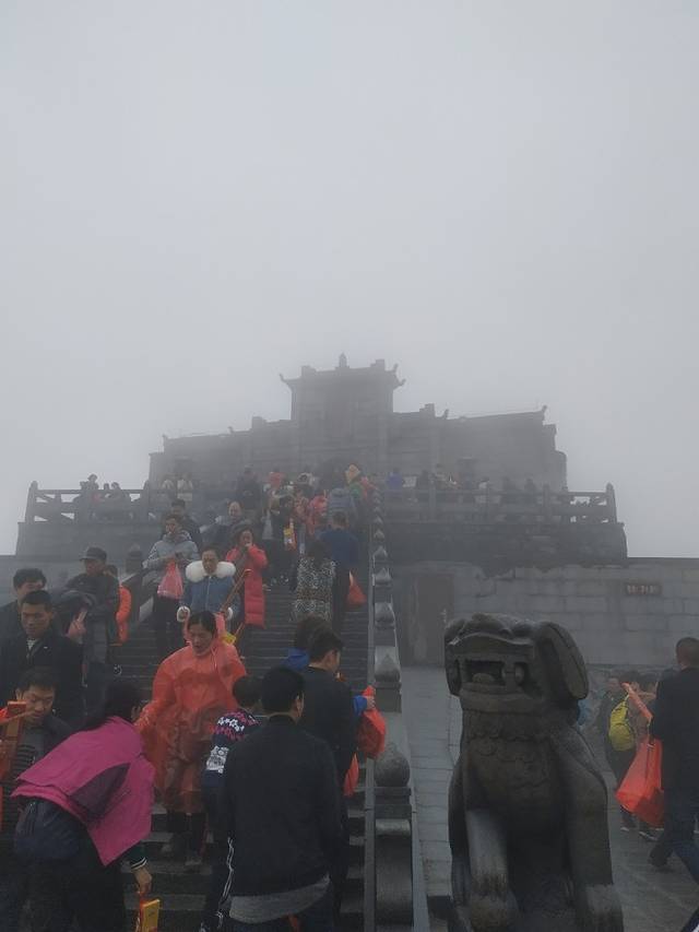 第二天早上九点多吃了早餐就开车去湖南衡山,全程四百多公里,路上在服务区休息了一下,又塞了一点点车,所以去到衡山以经三点多,就没有直接去排山。第三天早上六点起床,吃过早餐就马上去排队拿票坐车上山,上山的路真是九曲十八弯,坐车也要三十多分钟车才到南天门,在南天门还要走路四十分钟才到山顶祝融峯,天气又冷又大雾基本上什么风景也看不见。衡山风景区最差最应该给的差评就是览车。排队等待非常久,览车还落不到山脚,只下到一半再转旅游车下山非常麻烦。