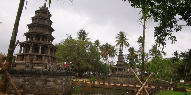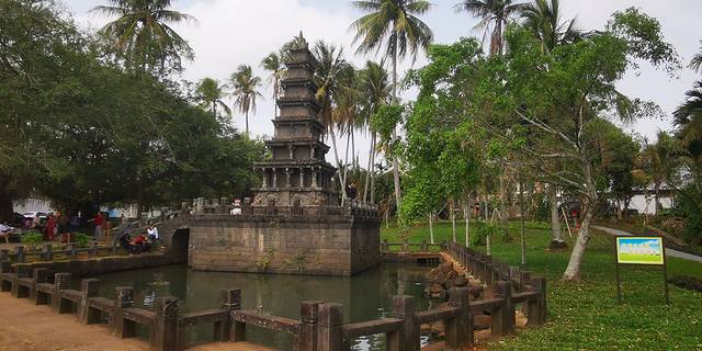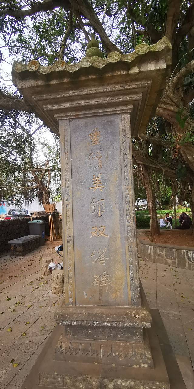 在网上看见关于美榔双塔的介绍:位于金江镇美榔村,始建于宋朝,已有800多年的历史.美榔双塔分姐妹两塔,姐塔为六角七层、高13.6米,妹塔四角七层、高12.55米,塔身造型美观,匠工精巧,周围林木苍翠,景致优雅。