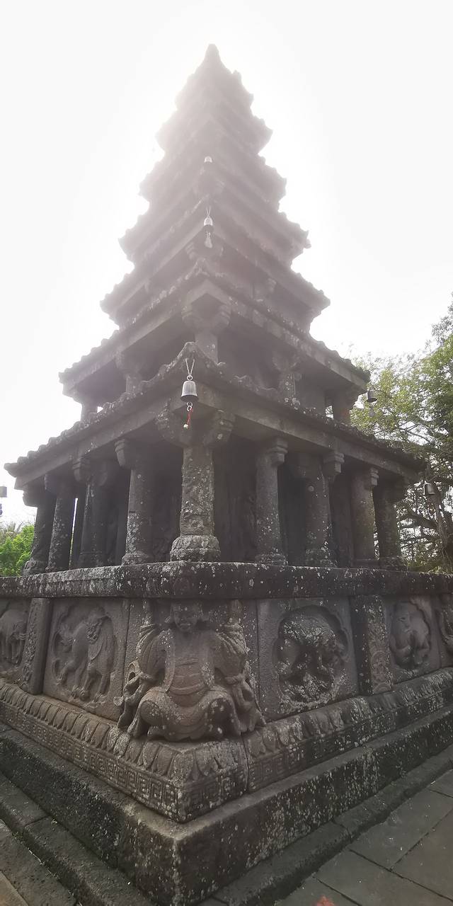 平面呈四角形,分七层,外观结构与上塔相同,但更为细腻,每层外壁内龛均雕有佛像,姿态各异须弦座上沿为莲瓣连续纹饰,四面刻有象、狮、獬豸、虎、马、麒麟等瑞善和佛教图纹浮雕,四角还雕有力士顶托,刹为相轮圆珠宝顶。双塔相距20米,均有高大的台基立于山池水中,台面四周设有栏杆,阶级。