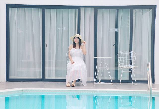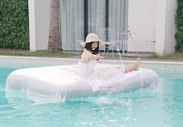 办理好入住,把行李放到房间,我们就迫不及待地出来拍照了。不愧是网红民宿,很多小姐姐慕名来此拍照打卡。推荐几个拍照的地点:①泳池。泳池真的太好拍了,泳池边上还提供了很多拍照道具,比如墨镜、鲜花、报纸、漂浮床等。②民宿外观。民宿外观为纯白色,随手一拍就是ins风美照。③椰林和吊床。E栋客房后面有一片椰林还有吊床。