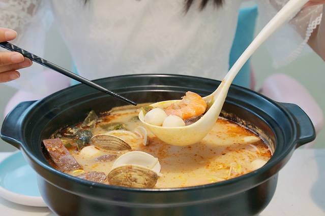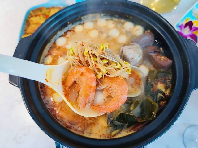推荐菜品:海南必吃海鲜糟粕醋。这是一道经典的海南菜,新捕捞的海鲜岂止一个“鲜”字了得?尤其是里面的鱼丸,肉丸Q弹,一连吃了好几个!汤底里加入了自然发酵的米糟产生的醋酸,酸辣可口,很加分。