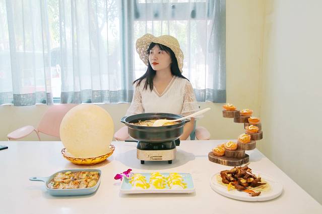 网红爆品椰菜花卷。它的造型非常独特,一上桌我就被它的造型吸引住了。花卷淡淡的椰香,搭配炼乳、火龙果果酱、猕猴桃果酱更佳。喜欢吃甜食的小伙伴一定不要错过。