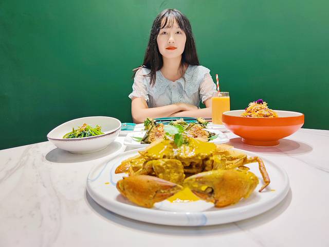 推荐菜品:咸蛋黄酱炒蟹。蟹是他们家的招牌,必点哦。口味儿上有胡椒炒蟹、辣椒炒蟹、蛋黄炒蟹、咖喱炒蟹,我们选了蛋黄味儿的。蟹是一整只,个头很大,上桌的时候已经切好了,蟹壳和蟹钳也已经敲好了,吃的时候很方便。蟹肉鲜嫩肥美,爱了爱了~这道菜还搭配了面包片,面包片酥酥脆脆的,很好吃。