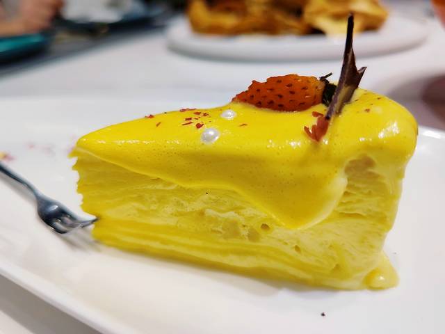 招牌榴莲千层。这道甜品简直是榴莲爱好者的福音!