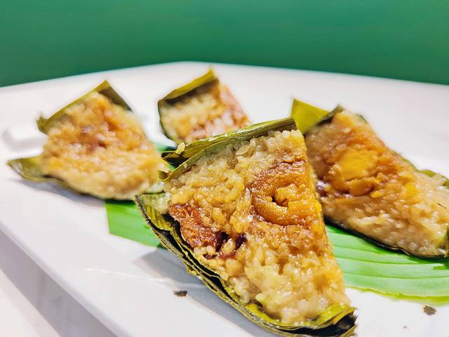 定安黑猪蛋黄粽子。我本身不是特别喜欢咸口的粽子,但锵锵蟹的安定黑猪蛋黄粽子惊艳到我了。猪肉很大块儿,跟蛋黄和粽子混合在一起,味道非常有层次感。