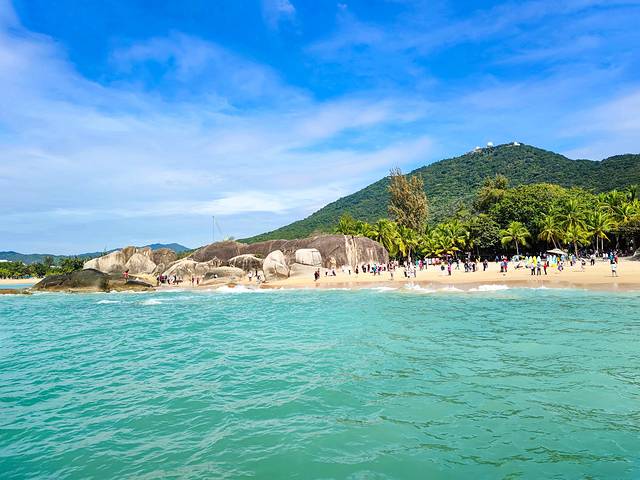 石头景观是天涯海角的一大看点,景区里的各类海上娱乐项目也同样精彩,有动感飞艇、海上观光游艇、直升机观海、香蕉船、帆船等可供选择。我们购买的套票里包含了海上观光游艇,在海上飞驰的感觉还挺刺激呢~船会经过日月石、海判南天、天涯石、海角石等,每到一个点儿师傅会给大家讲解,而且还会停船给大家留出一部分时间来拍照,这一点很赞哦。