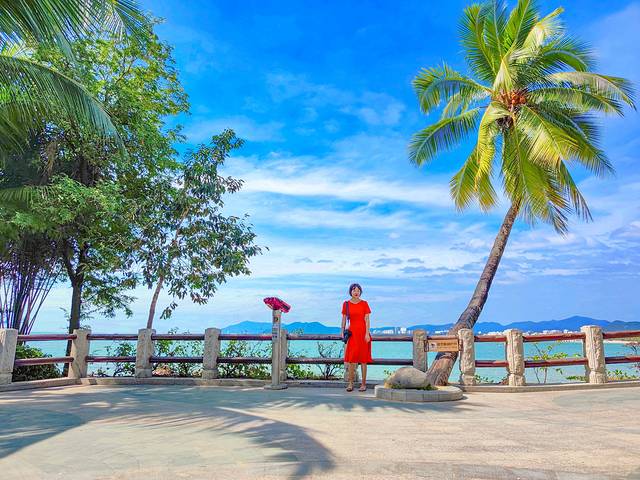 再往前走可抵达观海亭。山顶的观海亭是俯瞰三亚市区的绝佳之地,同时这里也不失为一处观日出赏日落的好地方。遗憾的是我们还有其他行程安排,此行算是跟鹿回头的日出日落无缘了。