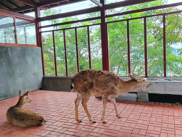 山上温度比山下略低,凉凉得很舒服。景区里生态环境很好,生长着各种叫不出名字的热带植物,绿意醉人。一路上走走拍拍照,然后我发现鹿回头居然真的有鹿!逐鹿亭里养着四只梅花鹿,分别叫做鹿美丽、鹿英俊、鹿初心和鹿未来。有人投喂时它们就乖乖地跑过来吃草,无人投喂时就自顾自地嬉戏打闹,乖巧温顺的样子简直太惹人喜爱了!听说景区里还有小猴子,不过我们没有到,遇见了一只正在觅食的超萌的小松鼠。