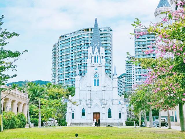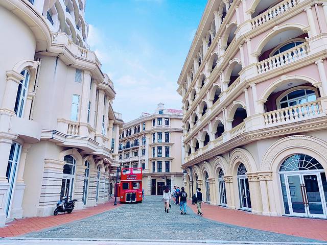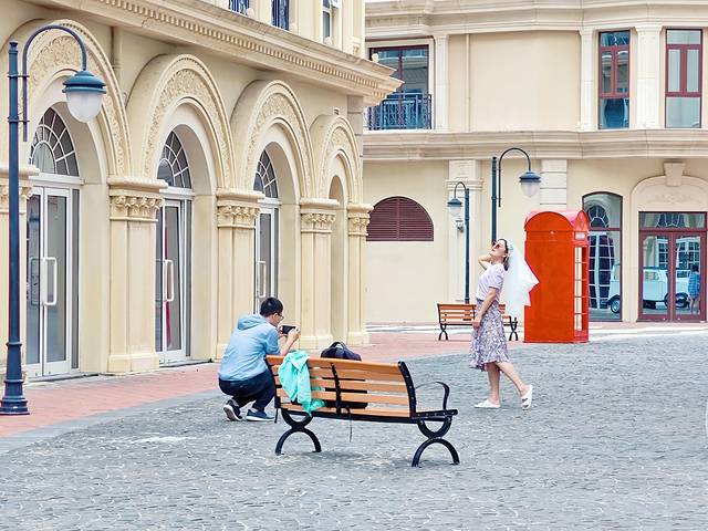 半山半岛帆船港附近有个吉庆广场,也是一处网红打卡地。浓郁的欧式风情让人有种一秒穿越到国外的感觉。小姐姐们互相凹造型拍照,还有一些新人来此拍婚纱照。不会摆pose也没关系,街道上的复古电话亭、老爷车、巴士、邮筒等是很好的拍照道具,怎么拍都是好看的。
