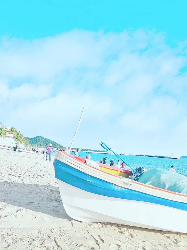 那天天气不太好,说实话,第一眼看到小镇的时候是有点失望的,拍了几张照片就直接去海边了。海边的时光安静又悠长,买来一个椰子,静静地坐在沙滩上和海风同饮,与停泊着的彩色渔船合影,还可以跟要出海的渔民唠会儿瞌。海边的时光也可以很洒脱,比如光脚在沙滩上与海风共舞,比如在海里认真挑选喜欢的贝壳。即便衣服被海浪打湿也无所谓,我们都很享受大海带来的欢乐。