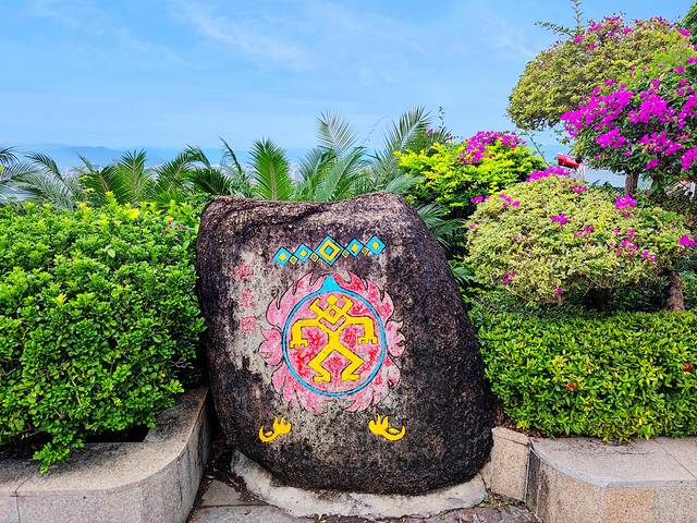 跨过“一见钟情鹿回头”才算是真正进入了景区。“牵你的手去鹿回头”打卡点、爱字摩崖石刻、永结同心台、连心锁、夫妻树、海枯不烂石、爱心永恒石刻、月老雕像等等,鹿回头不愧是“南海情山”,景区里跟爱情相关的元素几乎随处可见,而这也使得鹿回头成为了一处经典的以爱情文化为主题的景区。