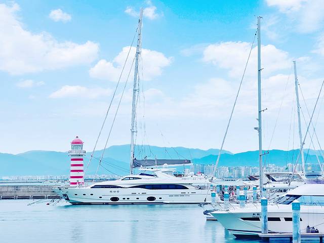 远眺南海观音,相望凤凰岛,半山半岛帆船港是一个得天独厚的天然避风港湾。后来才知道,它是海南岛上第一座世界级的帆船港,还是两届沃尔沃环球帆船赛中国赛区的指定经停港和竞赛村。
