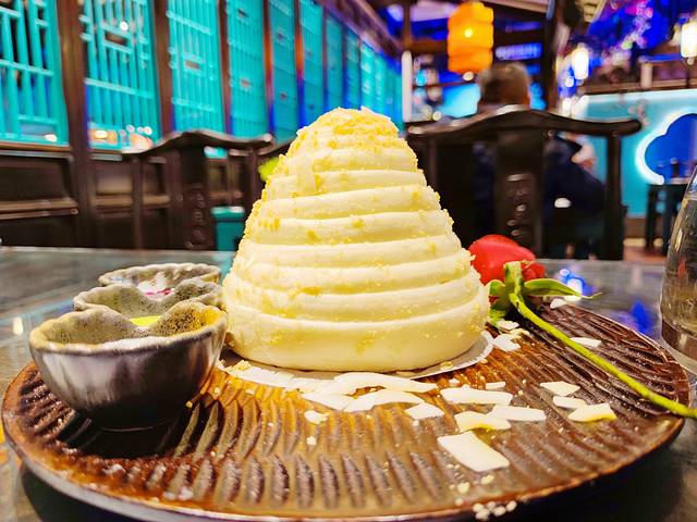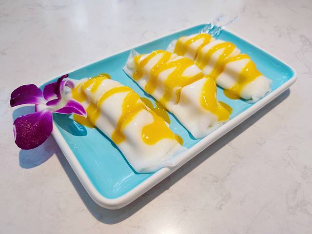 桂花芒果卷。这道菜不仅颜值高,入口也是很惊艳的感觉。不爱吃甜食的我吃完这道甜品都想再来一盘了,哈哈~