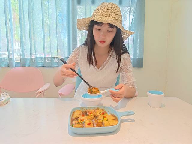 ins风的装修环境让人看一眼就心生欢喜,纯白、粉色和蒂芙尼蓝的搭配文艺范儿十足,餐厅里绿植随处可见,不仅非常养眼,还非常适合拍照。在这样的环境里用餐,真是一种享受呢~